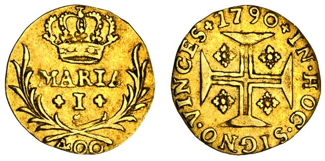 Portugal, Maria I (1786-99), 400-Reis (Cruzado), 1790, crowned shield, rev. cross (F.101210; KM 291), very fine