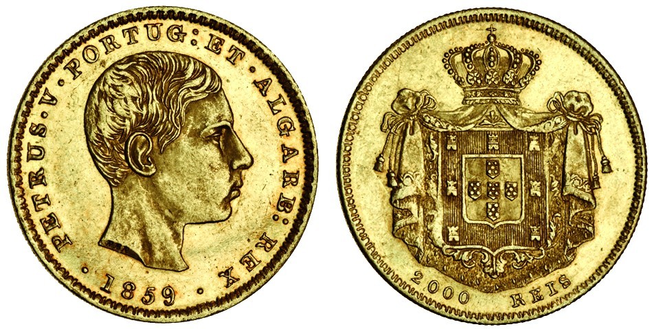 (g) Portugal, Peter V (1853-61), 2000-Reis, 1859, head right, rev. crowned arms (F.148; KM.500), hairlines, very fine