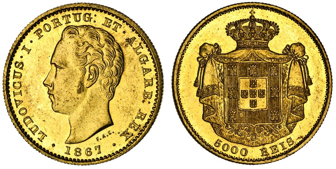 (g) Portugal, Luis I (1861-1889), 5000-Reis, 1867, head left, rev. crowned arms (F.153; KM.516), much brilliance, some light marks, edge knocks, extremely fine