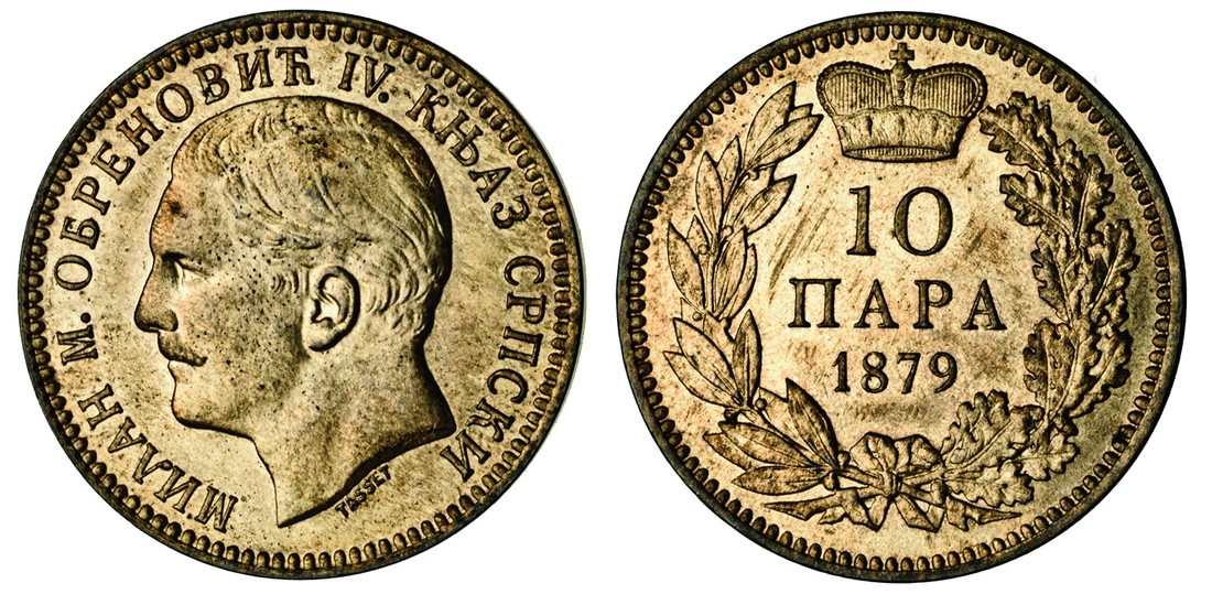 Serbia, Milan Obrenovich IV (1868-89), 10-Para, 1879, head left, rev. value in wreath (KM 8), uncirculated, with full lustre