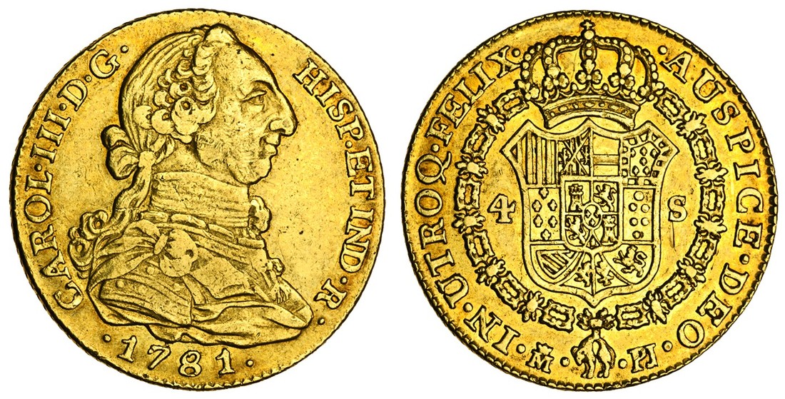 Spain, Charles III (1759-88), 4-Escudos, 1781 PJ, Madrid, bust right, rev. crowned shield (F.284; KM.418.1) remains of lustre on reverse, marks to face, scratch below S on reverse, very fine