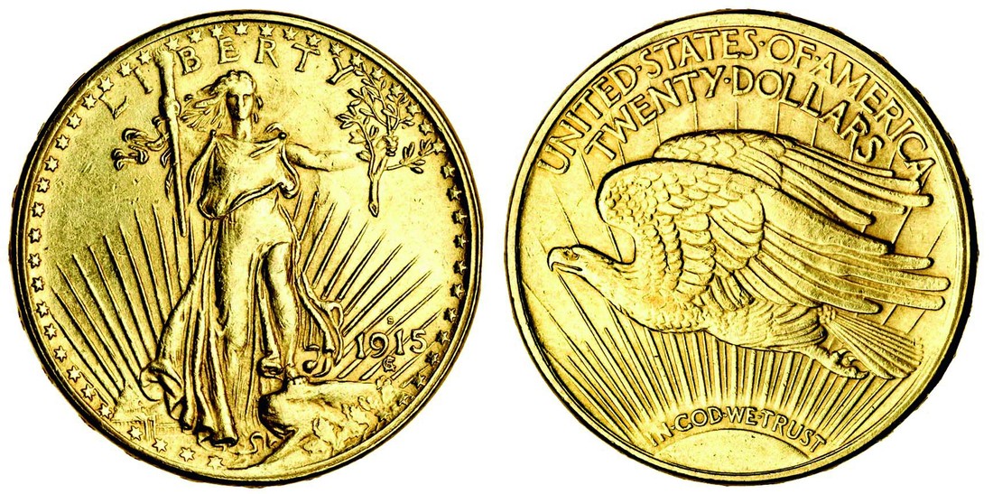 (g) United States of America, 20-Dollars, 1915S, Liberty standing, rev. eagle, good very fine