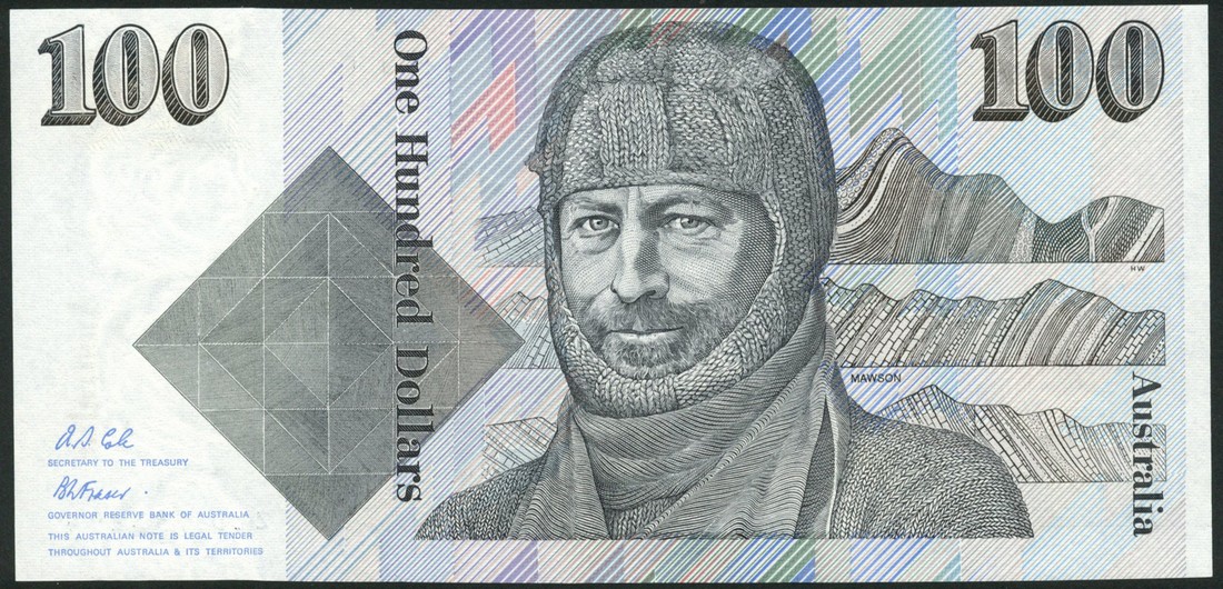 (x) Reserve Bank of Australia, $100 (2), ND (1992), prefix ZLD, grey and multicoloured, Tebbutt at left centre, Fraser-Cole signatures
