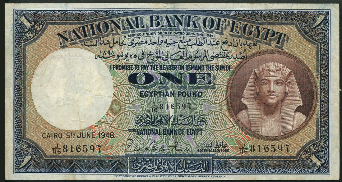 Egypt, a small group including Government Currency Notes, 5 and 10 piastres, ND (1940 issue), signature title 'Minister of Finance and Economy', also 10 piastre, ND (1940), signature title, 'Minister of Finance', also National Bank of Egypt, £1, 1948, and Banque du France, 5 francs, 1931