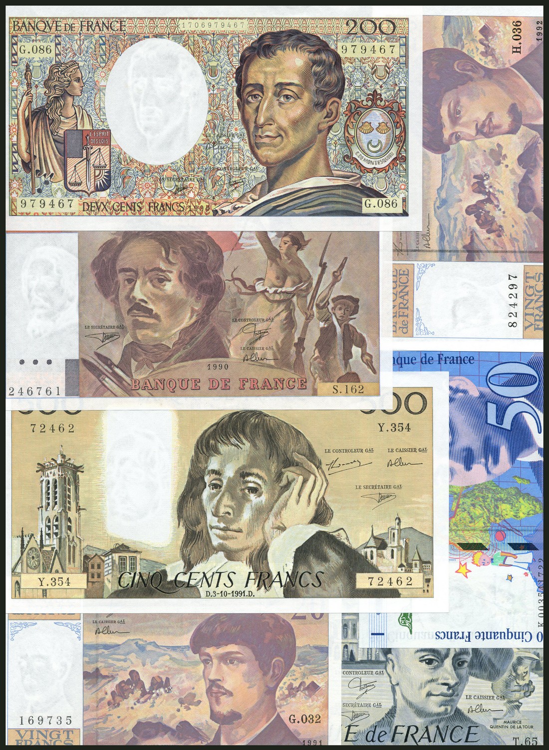 (x) Banque de France, a group of notes with various dates and denominations, an interesting and colourful group