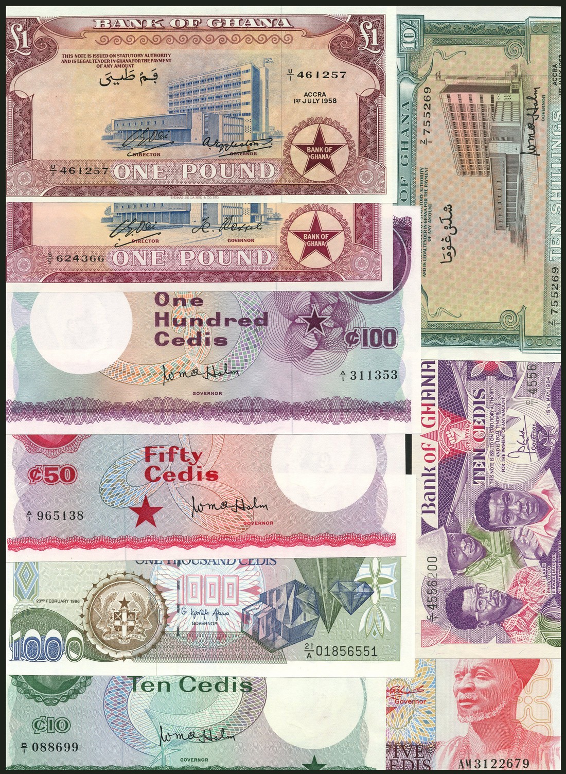 Bank of Ghana, a group 20 cedi notes of various demoninations, a lovely set, vibrant and colourful