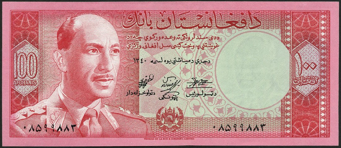 The Afghanistan Bank, a small group comprising 2, 5, 10 and 20 afghanis, 1948 issue, and 10, 20, 50 and 100 afghanis, 1961 issue