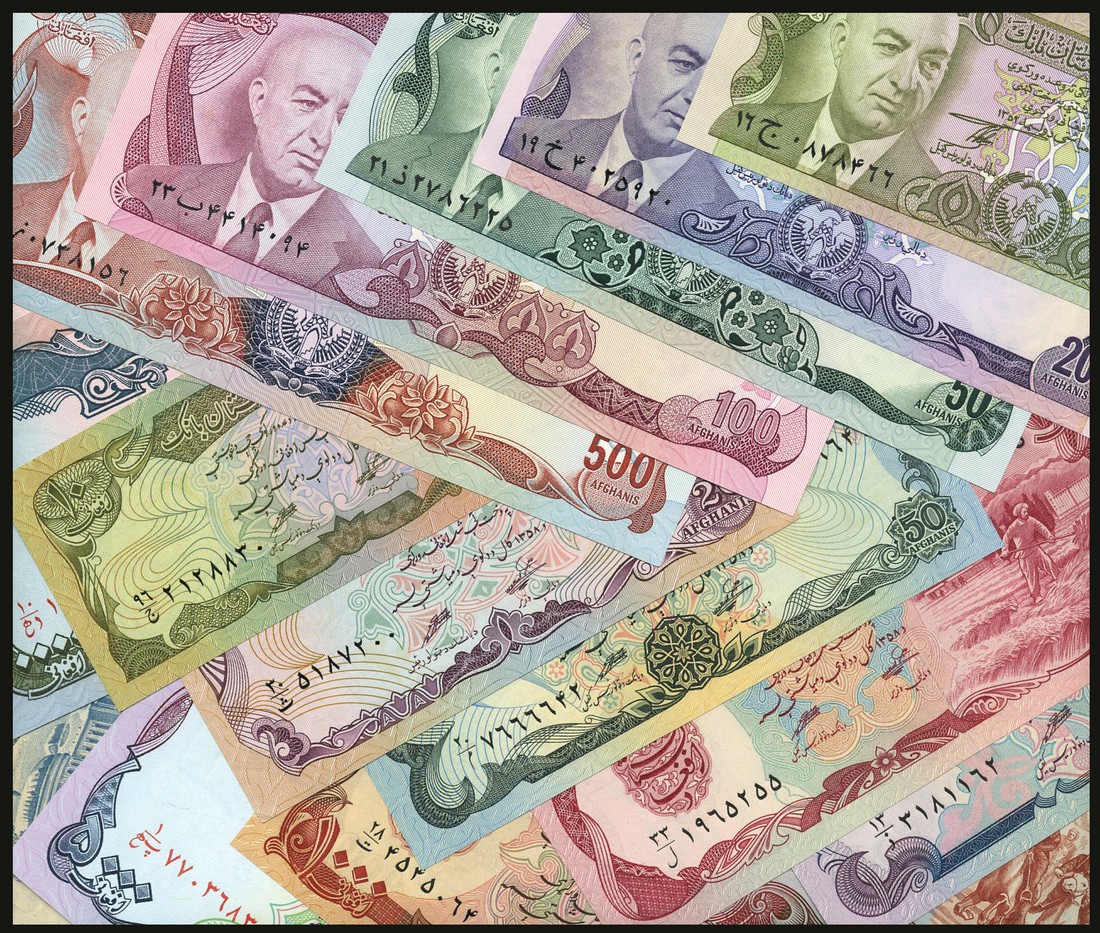 The Afghanistan Bank, a collection of notes comprising 10, 20, 50, 100, 1000 afhanis, 1973, 500 afghanis, 1977, 50 afghanis, 1978, and full sets of 1979, 1993, 2002 issues