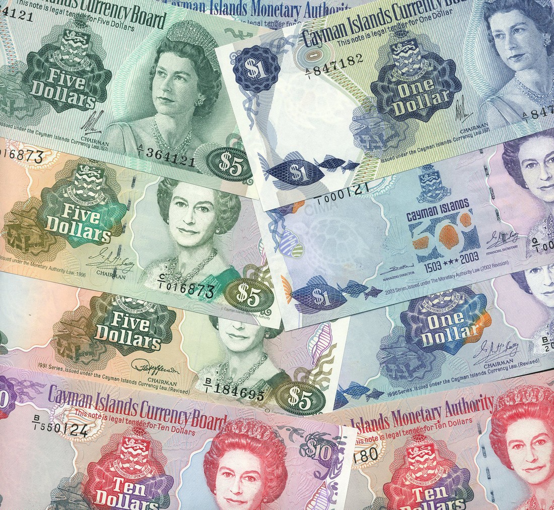Cayman Islands Currency Board, $1, and $5, 1971, and $10 1974, blue, green and red respectively, Elizabeth II at right, arms at centre, also $1, $5 and $10, 1991, $1, $5 and $10, 1996 and $1, 2003, all with Elizabeth II at right