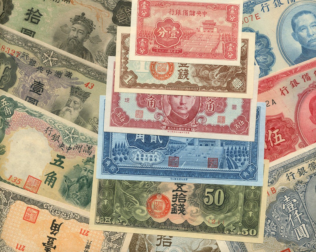 Central Reserve Bank of China, 20 cents, 5 and 10 yuan, 1940, 100 yuan, 1942, 1000 yuan, 1944, 1 and 50 cents, 1949, Manchukuo, 50 fen, 1935, 1 and 10 yuan, 1944, also various wartime inflationary issues (9)
