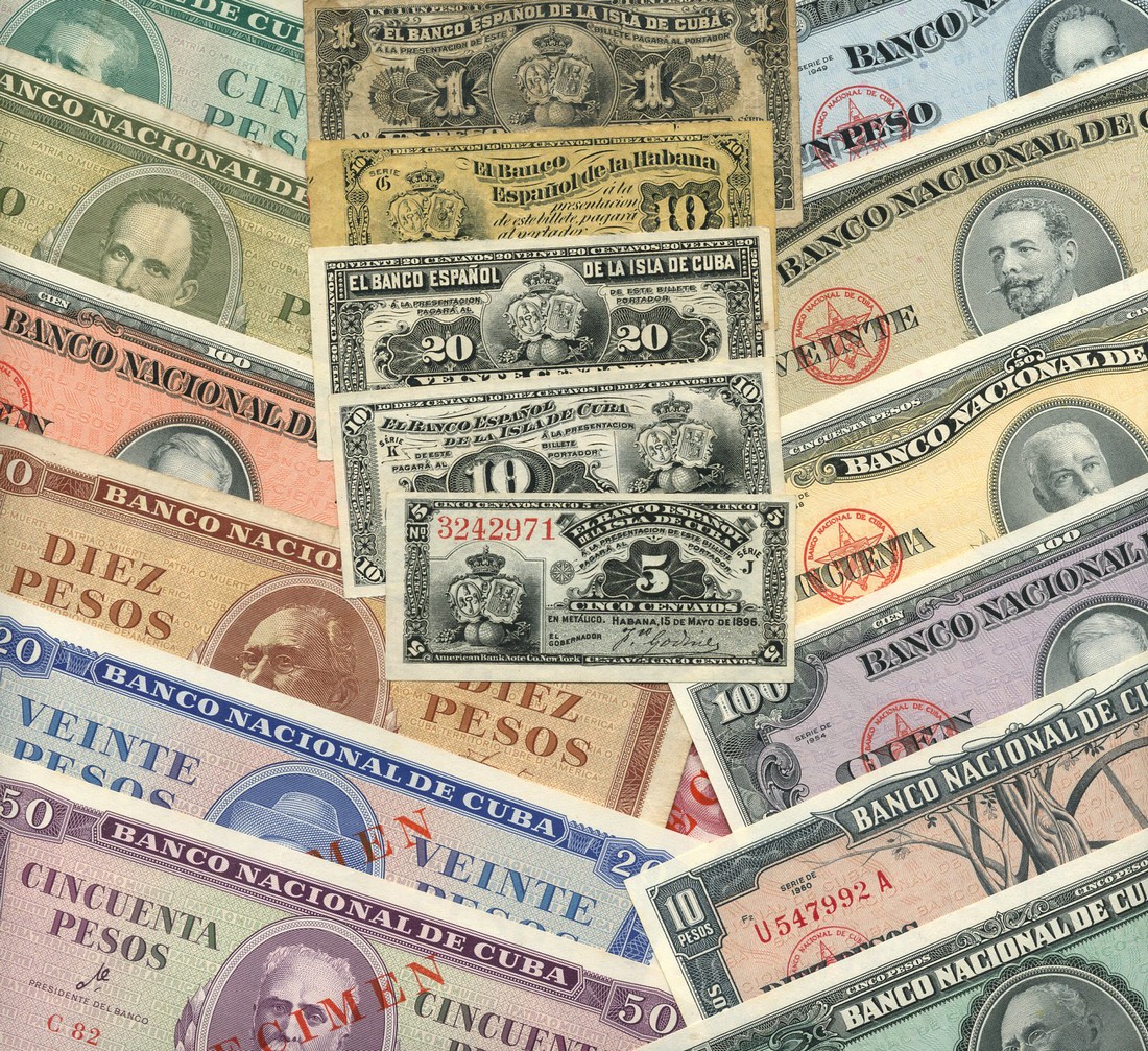 Cuba, a good sized group of notes dating from the 1870's to the 1960's, some private bank issues and several later issued notes and specimens,