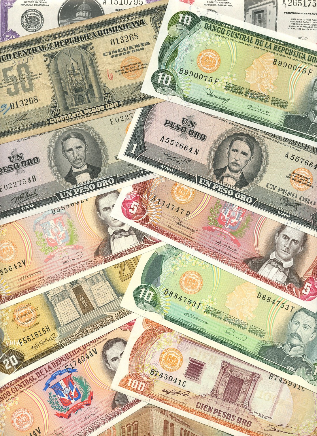 Dominican Republic, a group of notes including 50 pesos, ND (1947-50), serial number 013268, black, Columbus' Tomb at centre, also a selection of more modern issues