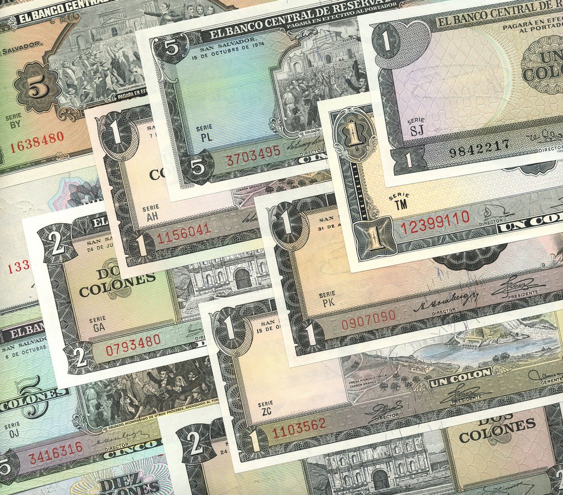 El Salvador, a group of modern issues, but including 1 colon, 1956 and 2 colones, 1964,