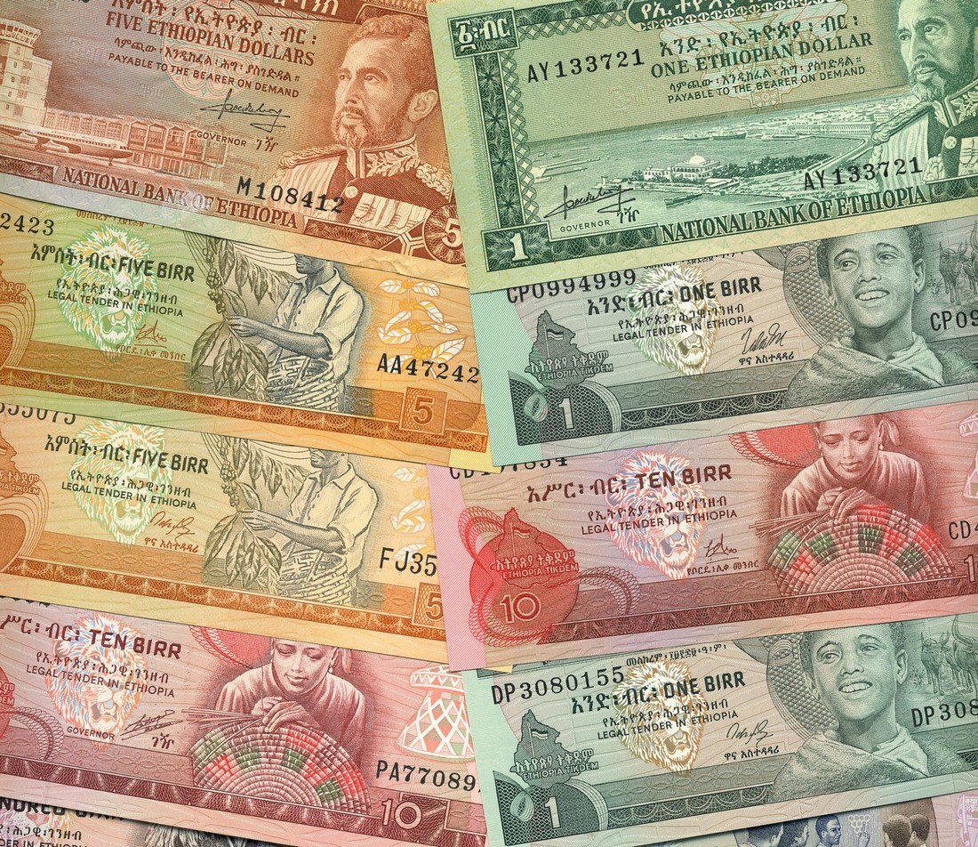 State Bank of Ethiopia, a group of notes, including 100 dollars, ND (1966), also including a 5 dollars, 1945 (very poor grade),
