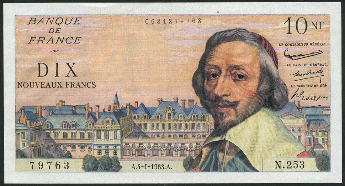 Banque de France, 5 new francs, 5 July 1962, blue, gold and multicoloured, and 10 new francs, 4 January 1963, multicoloured