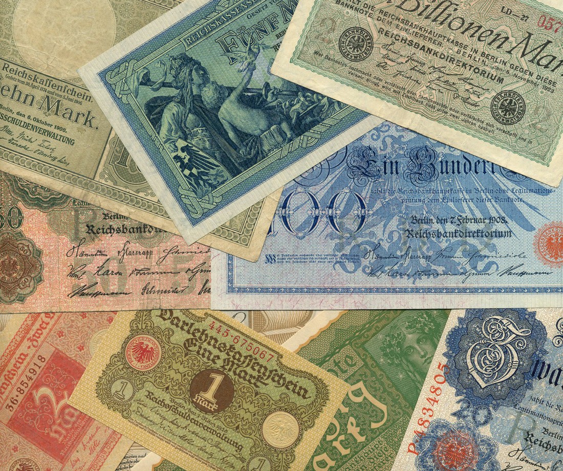 An almost complete set of German Inflationary issues, including 1 billion marks, 1 November 1923 and 2 billion marks, 5 November 1923, also several earlier issues