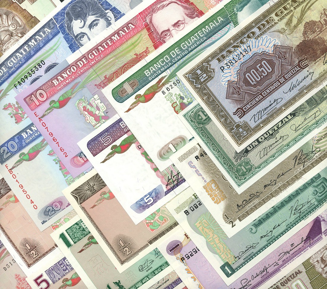 Banco de Guatemala, a group of notes from the 1967 series onwards, including 1/2, 1 and 5 quetzals, 1964-67 series
