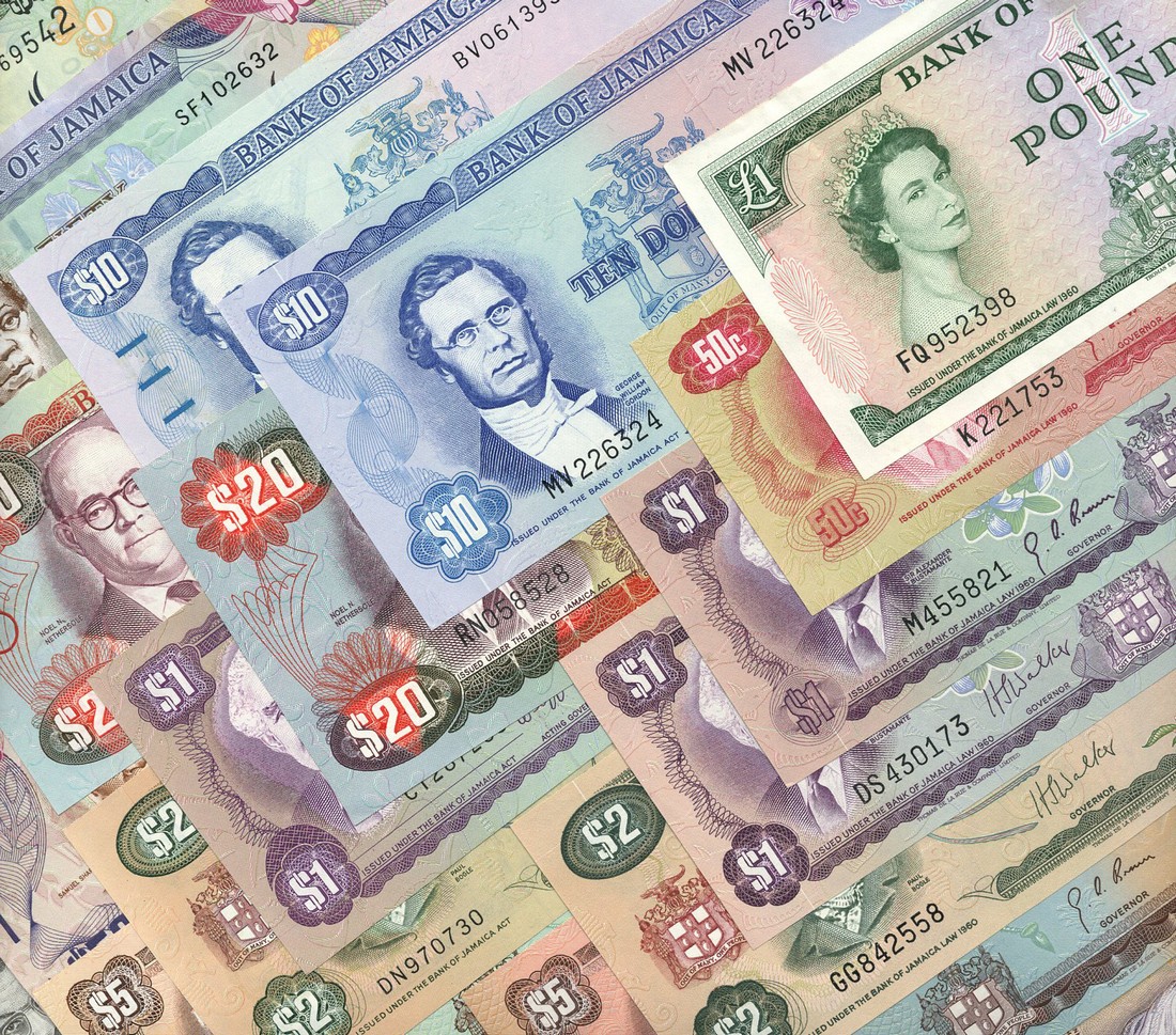 Bank of Jamaica, a group of notes including 5/-, ND (1960), serial number FK276028, red, Elizabeth II at left, also £1, green, as well as a significant number of later issues