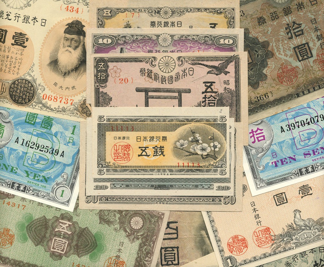 Japan, a group of mixed issues, including post WW2 military occupation, Manchurian occupation, and several modern notes,