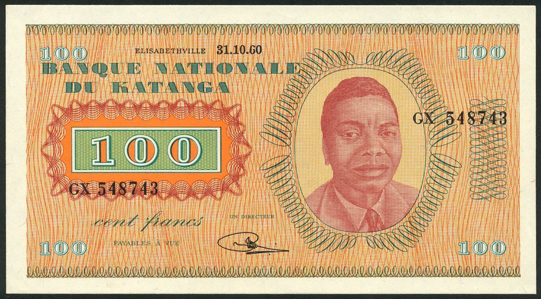 Banque Nationale du Katanga, 10, 20, 50 and 100 francs, 1960, all with Moise Tshombe at right, value at left and each corner, reverse Civic Theatre in Elizabethville