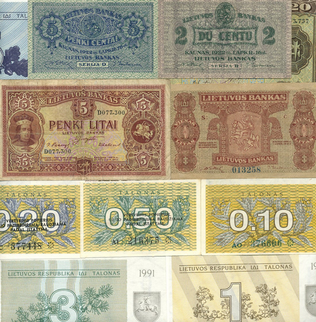 Lietuvos Bankas, a group including 1, 5, 20 and 50 centu, 1922, 5 and 20 litu, 1929-30, and a large set of modern issues