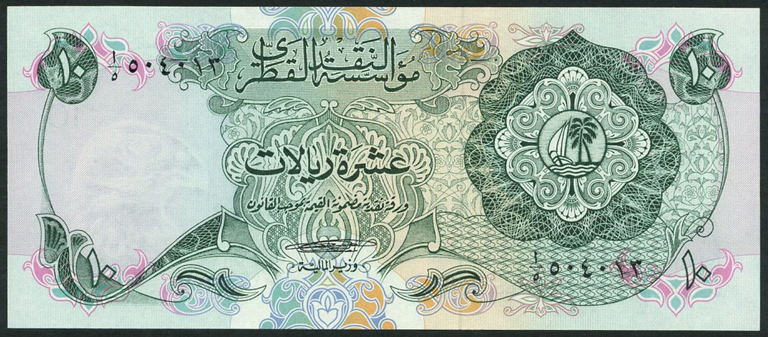 Qatar Monetary Agency, 1, 5 and 10 riyals, ND (1973), red-brown, brown and green respectively, arms at right