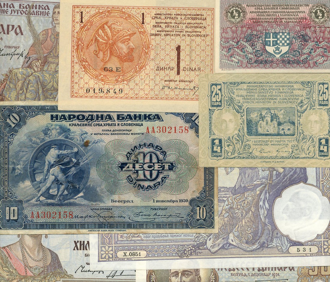 Yugoslavia, a large group of notes including Ministry of Finance, 1/2, 1 and 5 dinara, 1919, 25 para, 1921, 2, 4 and 80 kronen, 1919, and 21 dinara, 1920, along with a very large group of modern issues