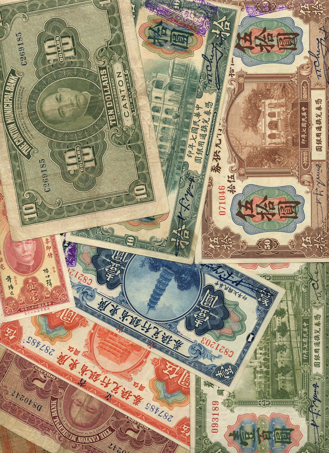 Canton Municipal Bank, a selection comprising 10 cents, 1933, 1 yuan (4), ND and 1933, 5 yuan,1933,10 yuan, 1933, also Kwantung Province 1,5,10,50 and 100 yuan, 1918