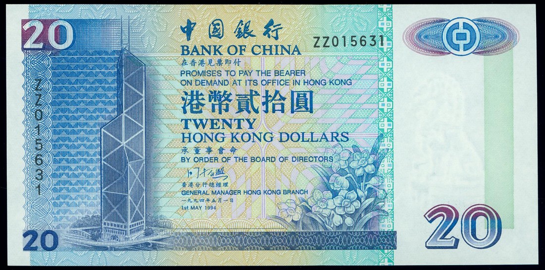 Bank of China, $20, $50, $100, $500 and $1000 Replacement notes, 1 May 1994, all with 'ZZ' prefix, first date of issue and now a very popular collecting theme
