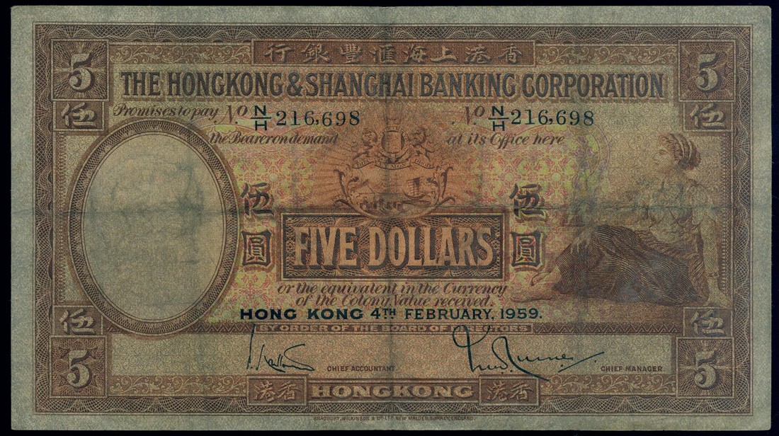 Hong Kong, group of 6 old forgery notes including Government Issues $1, Hong Kong and Shanghai Banking Corporation, $5, Chartered bank $5,