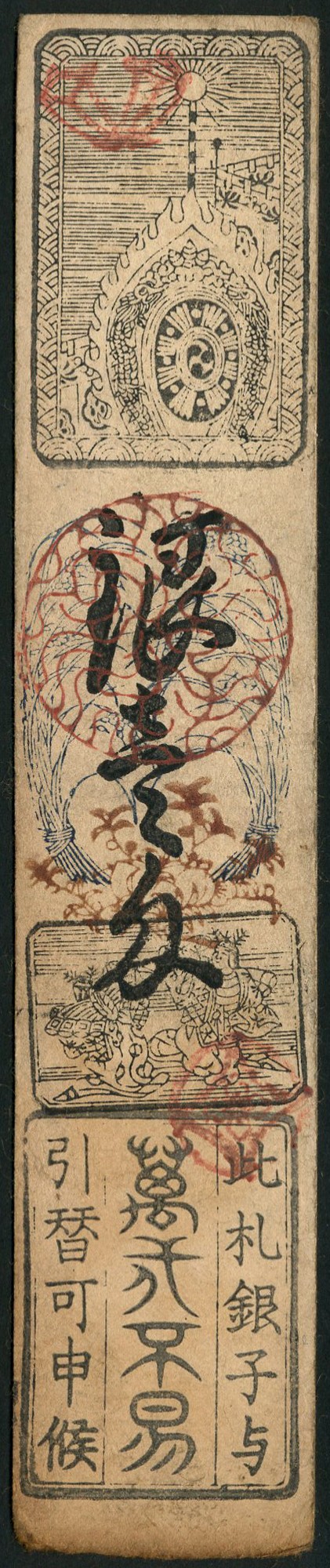 Japanese Hansatsu, a selection comprising Kii Province, Kanrenja issue 1 mon, 1858 and a 5 fun, 1858, Wakayama Han, 1 mon (4), 1823, Koyasan issue 1 mon (2), 1823, Awa Province, Tokushima Han, 1 mon (2), 1736-, 3 fun 'reissue', 1 mon with revaluation to 8 rin (4), 1868-,
