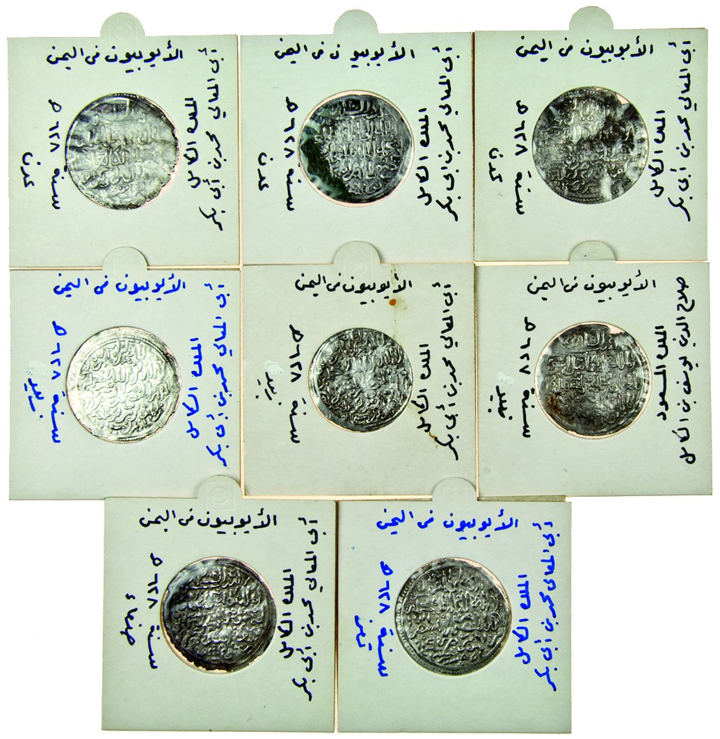 (x) Ayyubid of the Yemen, al-'Adil Abu Bakr (1229-33), Dirhams (8), 'Aden, AH628 (3), San'a, AH628, Ta'izz ?, AH628, Zabid (3), AH627, 628 (2) (A.1099; Balog 1014), very fine to extremely fine (8)
