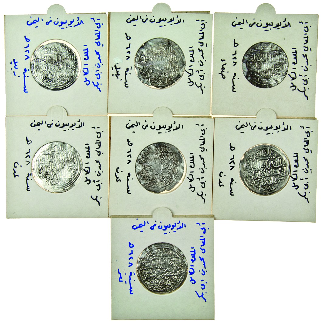 (x) Ayyubid of the Yemen, al-'Adil Abu Bakr, Dirhams (7), 'Aden, AH628 (3), San'a, AH628, Ta'izz ?, AH628, Zabid, AH628 (2) (A.1099; Balog 1014), very fine to extremely fine (7)