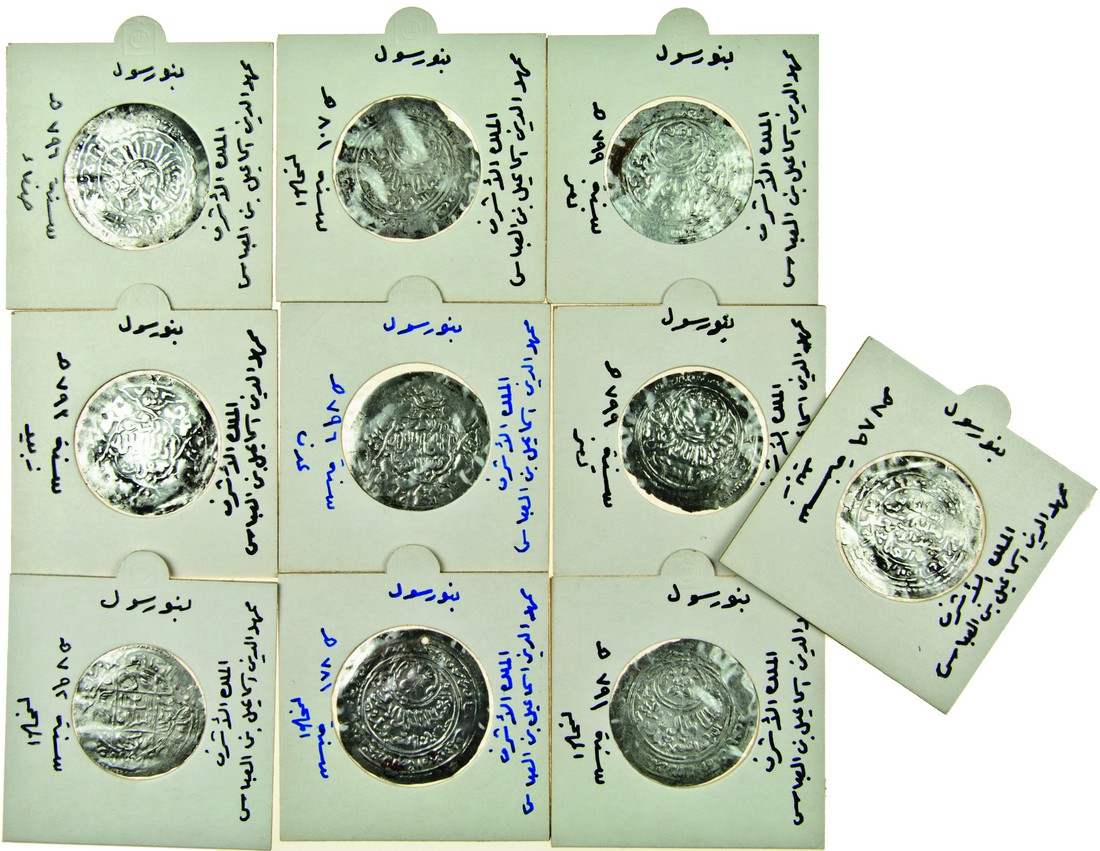(x) Rasulid, Al-Ashraf Mumahhid, Dirhams (10), type D, Zabid, fish in margin, type F, al-Mahjam, hawk, Zabid / Ta'izz, seated figure (2), type G, bull and fish in small central circle, type I-1, seated figure within circle at top (5) (A.1110.4, 1110.6, 1110.7, 1110.9), average condition very fine, some scarce or rare (10)