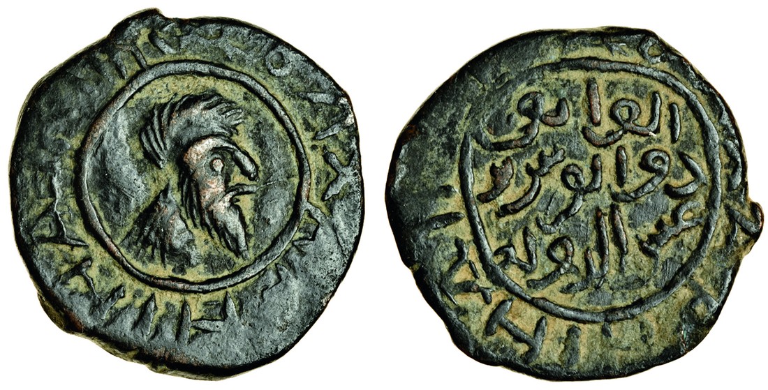 (x) Danishmendids, Dhu'l-Qarnayn (at Malatya 1152-62), AE Dirham (Malatyah), undated, bearded and turbaned head right, Greek legend around, rev. name and title of Dhu’l-Qarnayn in central circle (A.1240), about very fine, scarce