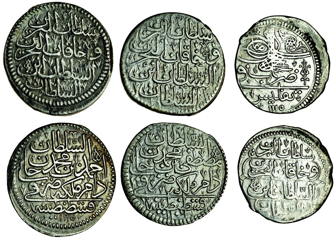 (x) Ottoman, Mustafa II (1695-1703), Yarim Kurus, Qustantiniya, AH1106, Ahmed III (1703-30), ½-Zolota, AH1115 (KM.116, 150), good very fine and about extremely fine; Georgia, Abbasi (3), Tiflis, AH1115 (KM.7), one extremely fine, others about very fine (5)