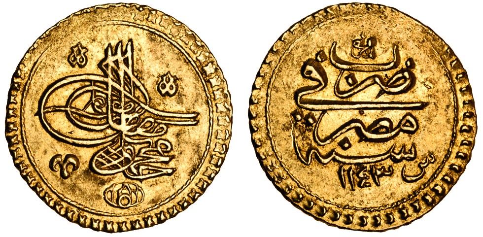 (x) Ottoman, Mahmud I, AV Zinjirli Altin, Misr, AH1143 vii (KM.91), about extremely fine