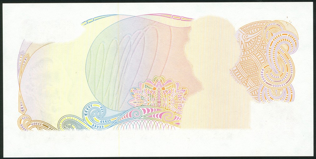 Reserve Bank of New Zealand, proof $100, ND (1983), red on multicoloured underprint, portrait of Queen Elizabeth II, value tablets and script omitted from obverse, reverse complete with mountain daisy at left and takahe at centre