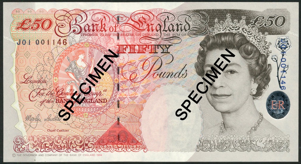 Bank of England, M.V. Lowther, small group comprising £5 (1999), prefix QM20, £10 (1999), prefixes YR20 and QM10, £50 (1999), prefix J01, £10 (2000), prefixes AA01 and A.J.Bailey £10 (2004), prefix DJ19, £20 (2007), prefix AA19 and £20 replacement notes (2007), prefix LL18