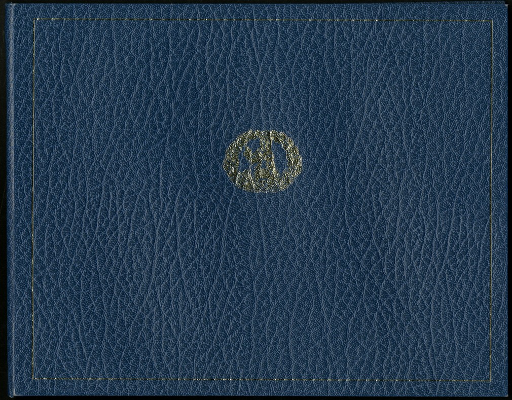Debden Presentation pack, blue album with Britannia in gold at centre, containing Gill £5, series D, serial number SE90 999116 and Gill series E, serial number A01 999116
