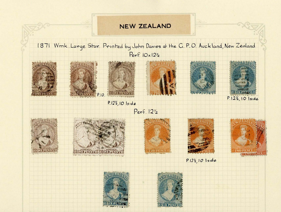 Perf. 10 1d., Perf. 10x12½ 1d., 2d. and 6d., Perf. 12½ compound with perf. 10 on one side 1d., 2d. and 6d., Perf. 12½ 1d. (3 with a pair), 2d. (3) and 6d. (2), variously cancelled with the perf. 12½ single with Temuka Star; a couple with faults though generally good to fine