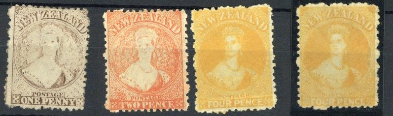 No watermark 1d. brown, 2d. vermilion and 4d. orange-yellow (2, one showing part watermark letters), 1d. regummed, the others with large part original gum; the 2d. and one 4d. with horizontal creases. S.G. 137-139, 139b, £1,760