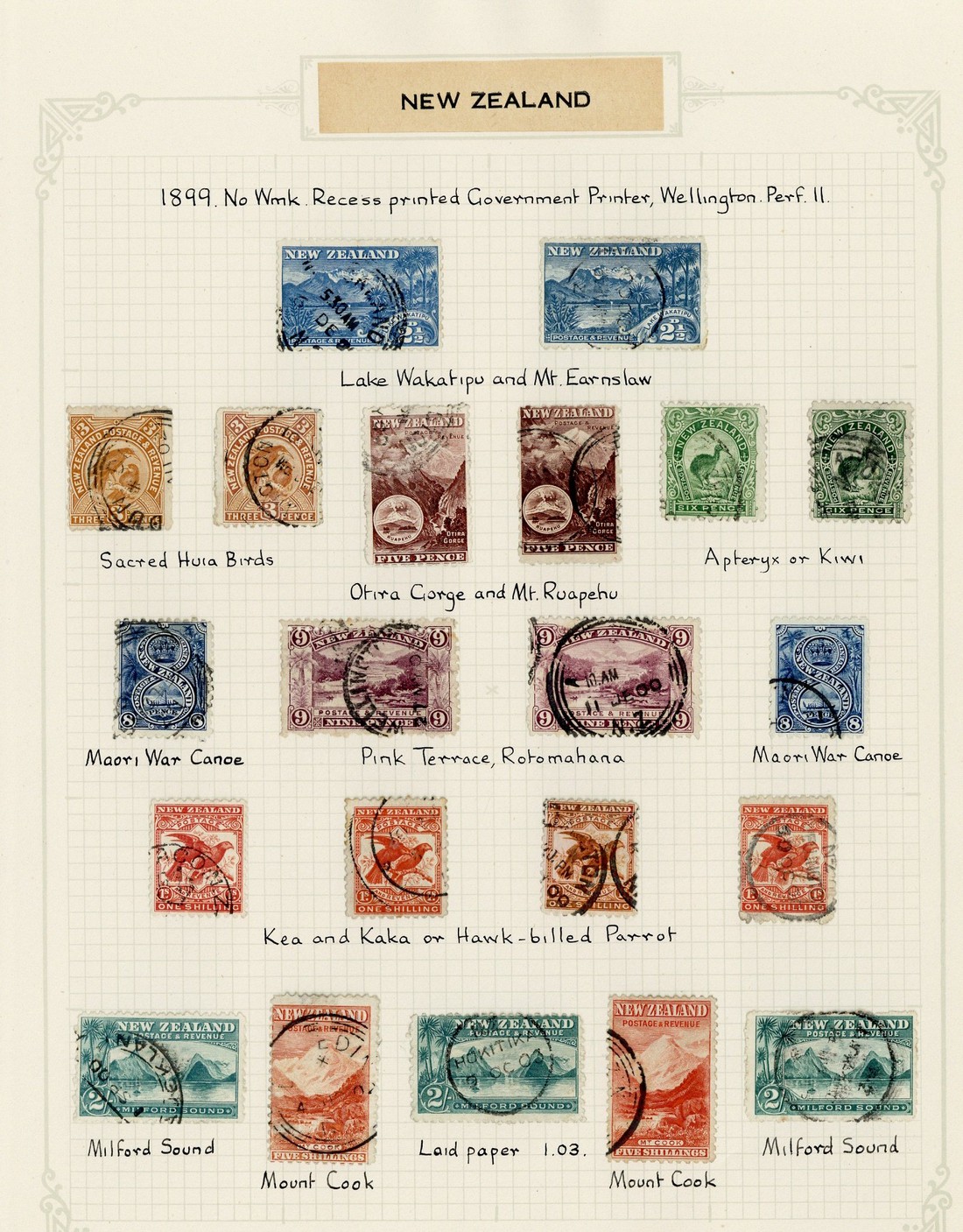 1899-1903 Pirie paper, perf. 11 2½d. to 5/- set of eleven with two of each value, additional 4d., 6d. (2), 1/- (2), 2/- on laid paper, and 1900 perf. 11 ½d. (4), 1d. (3), 1½d. (3) and 2d. (3) shades; generally good to fine used. S.G. 260-270, c. £1,270