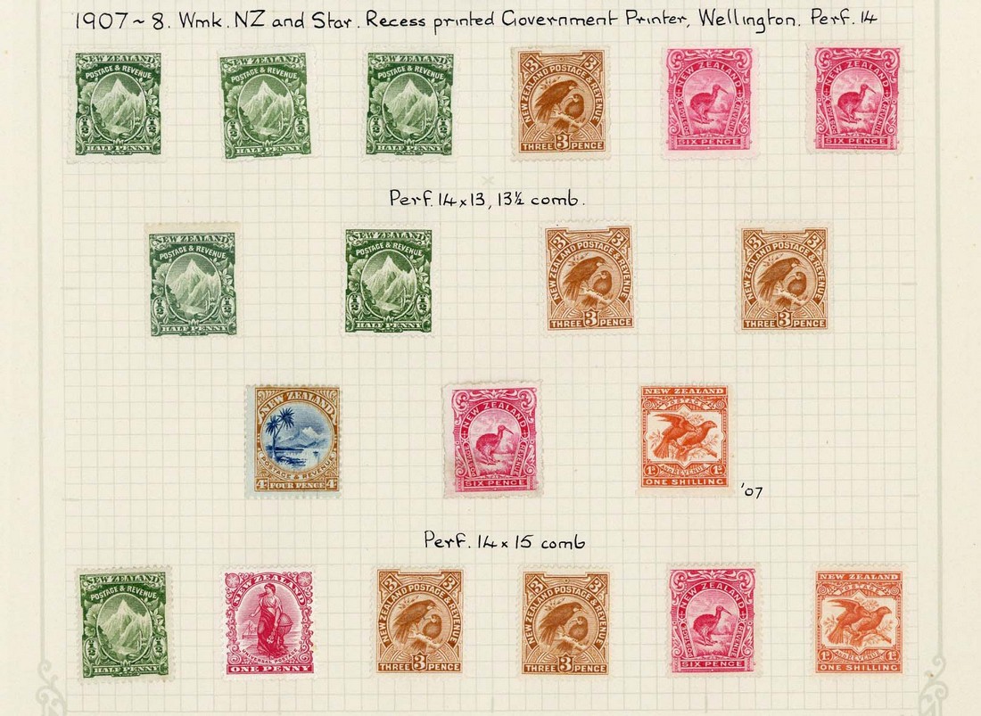 1907-08 perf. 14 line ½d. (3), 3d and 6d. (2), perf. 14x13, 13½ ½d. (3), 3d. (2), 4d., 6d. (small soil mark) and 1/-, and perf. 14x15 comb ½d., 1d., 3d. (2), 6d. and 1/- (2); good to fine mint; also a similar used selection (21). S.G. 374-386 group, c. £1,300