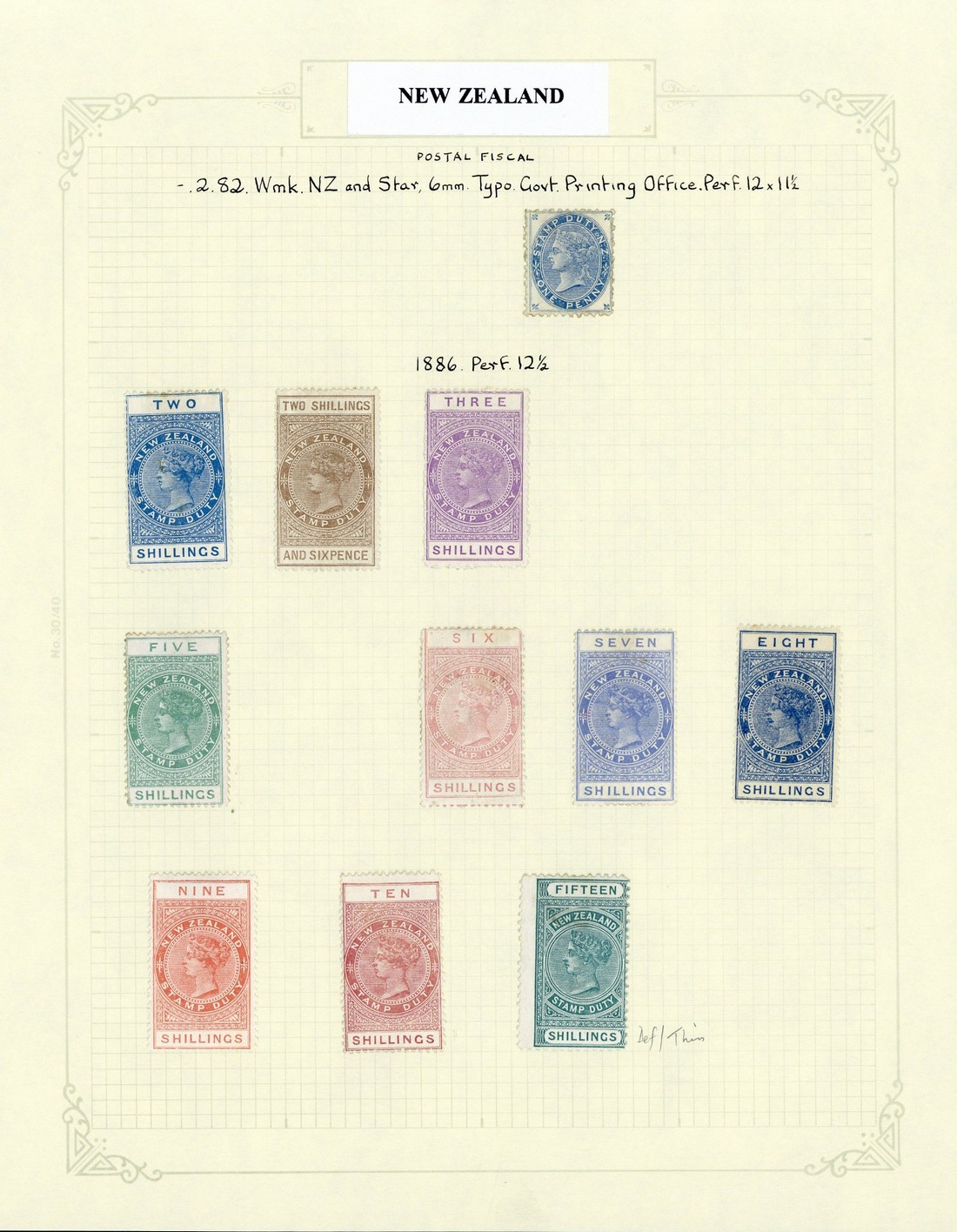 1882-1901 unused/mint selection (35) including 1886 to 15/-, 1888 to 9/- with 7/6d., 1895-1901 to £1 and 1903 to £1, not all guaranteed as unused though of generally good to fine appearance