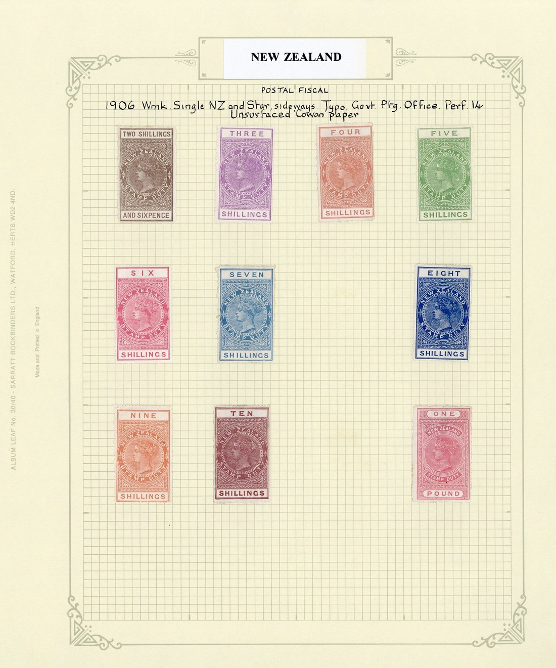 1906 2/- to 7/-, 8/-, 9/-. 10/-, £1, and 1907 2/-, 3/-, 6/- and 10/-, unused with part gum; £1 with tear at foot, otherwise sound. S.G. F78-95 group, £3,445