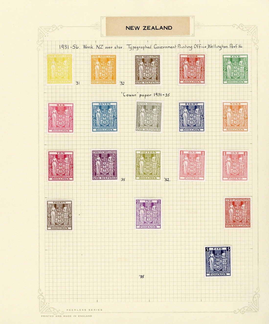1931-35 Cowan paper 1/3d. (both) to £1 (2), £2, £2.10 and £5, mint; £2.10 and £5 with a couple of light marks on gum, otherwise fine. S.G. F145-168 group, £2,000+