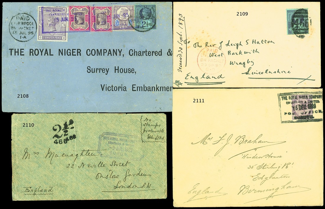 Akassa "the royal niger company,/chartered & limited./post office,/akassa." single-framed d.s. Sacher Type 9A, S.G. Type 5