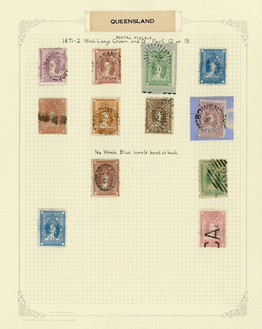 — watermarked 1d., 6d., 1/- (on small piece), 2/-, 5/-, 10/-, 20/- (on small piece), no wmk. 6d., 1/- and 2/-, all postally used, good to fine. Cat. £1344