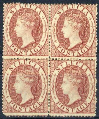 1860 watermark Small Star, perf 14 to 16 1d. rose-red block of four, unused with part or large part original gum, the lower left stamp with rounded corner, otherwise fine. S.G. 1, £400